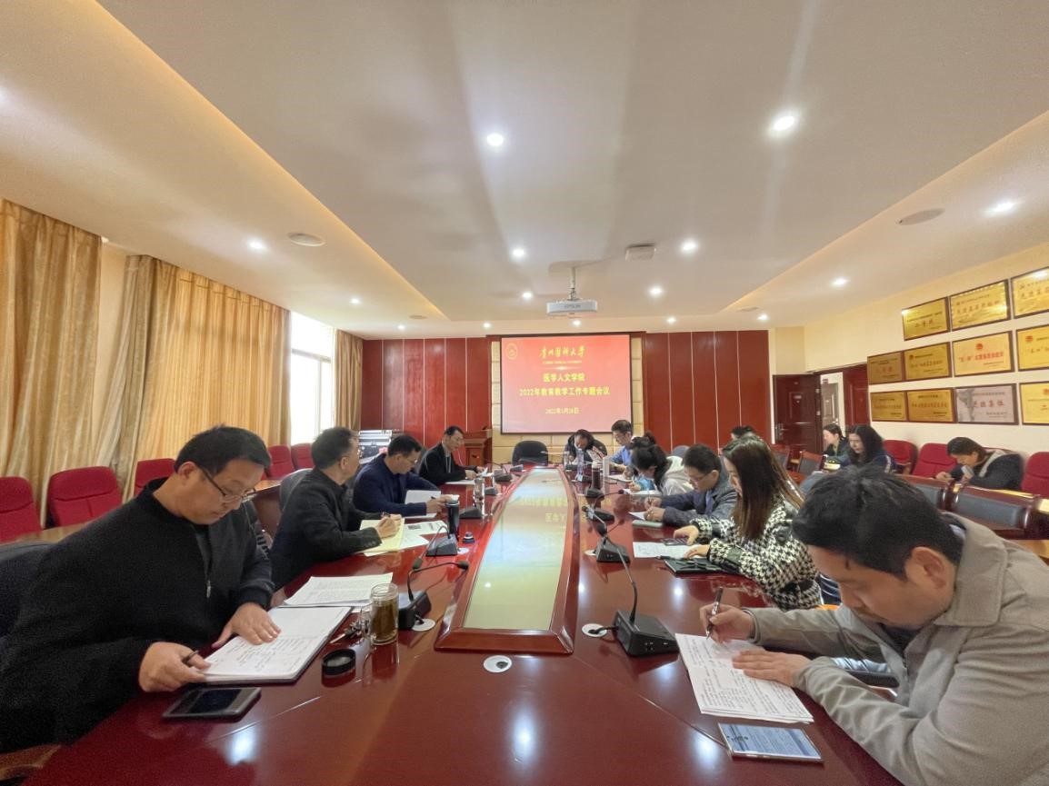 严万森传达学校教学工作会议工作精神,就学院专业建设、一流人才培养、课程建设、2023年本科教育教学审核性评估等工作进行布局。