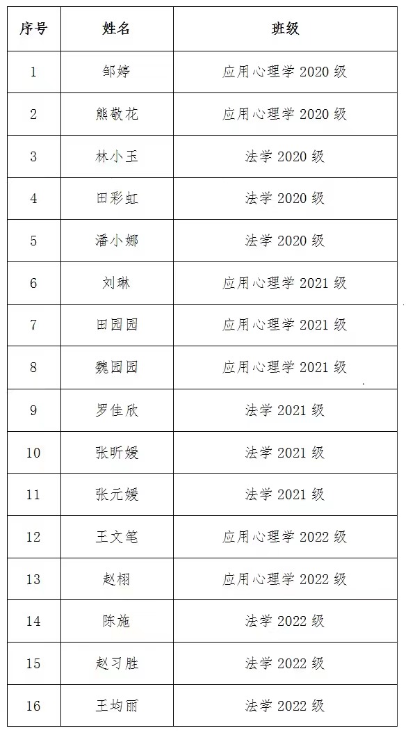 为体现党和政府对高校家庭经济困难学生的关怀,激励普通高校家庭经济困难学生勤奋学习、努力进取,根据《省财政厅等五部门关于印发<贵州省学生资助资金管理办法>的通知》(黔财教〔2022〕118号)、《省财政厅省教育厅关于下达2023年学生资助补助经费(高等教育)预算的通知》(黔财教〔2023〕72号)、《永利yl23411官网本科生国家励志奖学金实施细则(修订)》(校政发〔2021〕78号)要求,结合我院实际情况,严格按程序推荐2023年度本科生国家励志奖学金人选,拟推荐名单如下: