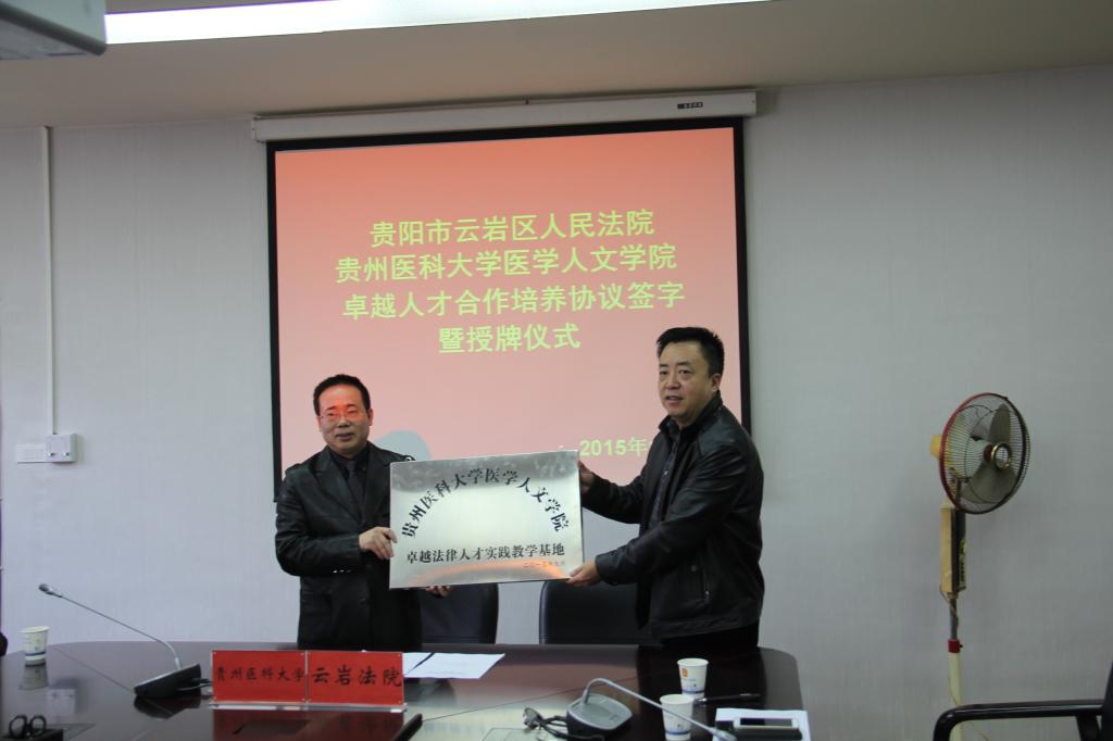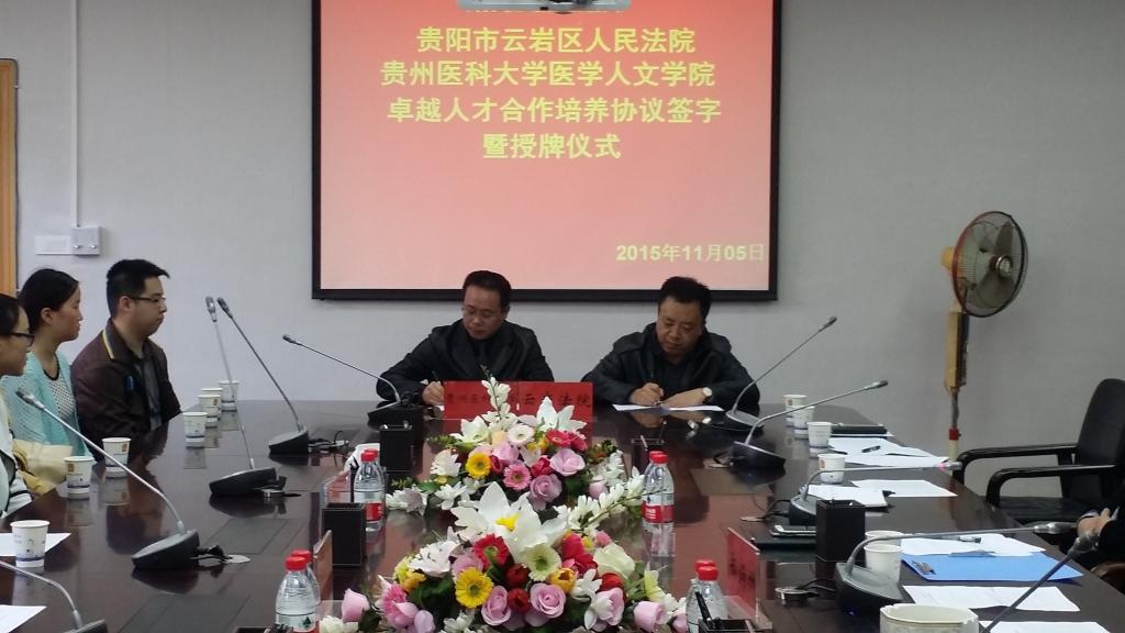 2015年11月5日上午,我校yL23411永利与贵阳市云岩区人民法院举行了卓越法律人才合作培养协议签字暨授牌仪式,这标志着我校yL23411永利卓越法律人才实践教学环节正式启动。