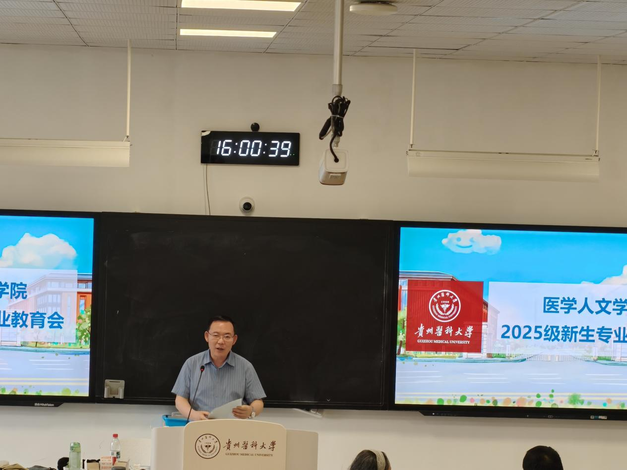 会上,冯广卫首先对新生的到来表示热烈欢迎,并简要介绍了学院的发展历程、师资队伍、学科建设以及人才培养成果,使新生们对学院有了初步的整体认识。他强调,大学阶段不仅是知识积累的关键时期,更是能力塑造的重要阶段,希望同学们在未来的学习生活中,着力培养并提升发现问题的敏锐洞察力、分析问题的逻辑思辨力、解决问题的实践行动力、自主学习的内在驱动力、创新创造的突破能力等五项核心能力。