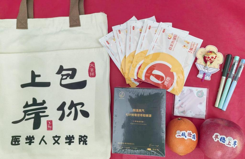 学院高度重视考研学生的成长与发展,始终将为学生办实事、解难题落到实处。此次发放的考研慰问包经过精心筹备,不仅实用贴心,更蕴含着美好寓意:印有“包你上岸”的定制帆布包,兼具收纳功能与励志属性;黑笔、红笔满足刷题标注需求,便利贴方便记录考点重点;蒸汽眼罩、暖宝宝为长时间备考的学子舒缓眼部疲劳、抵御寒意;“苹稳上岸”苹果、“一战橙顶”橙子寄托着学院对学子旗开得胜的祝福,棒棒糖则为紧张的备考生活增添甜蜜动力。每一份慰问包都承载着学院的关怀与期许,让同学们在冲刺阶段感受到满满的温暖与力量。